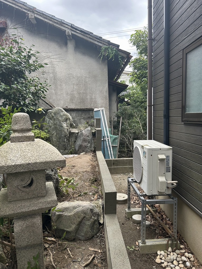 (完成した鉄骨カーポートのサイズは間口7,900mm×奥行4,910mm(屋根寸法)、高さ2,400mm(梁下からアスファルト面で一番低い位置)です。)
